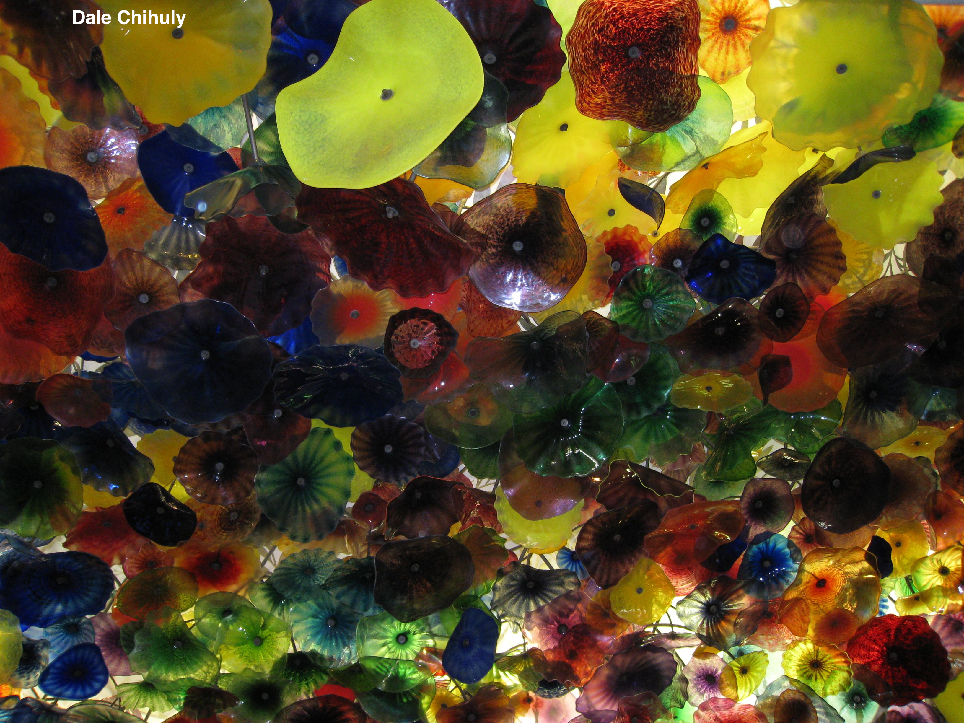 So relate to where you’re at. Love the ceiling in the lobby at the Bellagio in Las Vegas, which looks like the top picture, above. Being unable to not make things about me, I’m all ready to take glass blowing. There used to be somebody here who gave lessons, but they are gone. I sold out to the man just this morning. Very interesting times. I had to return to daily meditation and reading things I found inspiring when I was in my twenties to sort of start over (Wayne Dyer, Real Magic). Sold out to the man, but will be able to buy new underwear. I’m sure I’m not the only person writing a book in need of new underwear. Thoughts are with you.