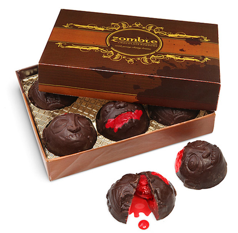 Also, if you’re looking for the perfect Valentine’s Day gift may I suggest these dark chocolate covered zombie heads filled with red cherry brains? It either says, I-think-you’re-swell-but-if-there’s-a-zombie-apocalypse-I’m-outta-here or, I-love-you-so-much-I’m-willing-to-lick-your-brains. I’m really not sure which to be perfectly honest.