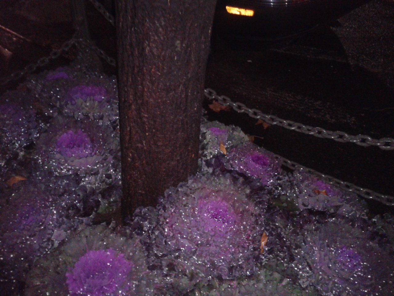 Speaking of photos, take a look at this shot I took when I got off the F the other night. It’s called ornamental cabbage. With rainwater glistening on the leaves I thought it looked F for fantastic. Unfortunately the flash on my camera caused a large rat to run out from under the shrubbery. His name was Claude, and he didn’t care for chocolate. So obviously he and I will never have a relationship. Also he’s a rat for heaven’s sake. What kind of a sick twist of a woman do you think I am?